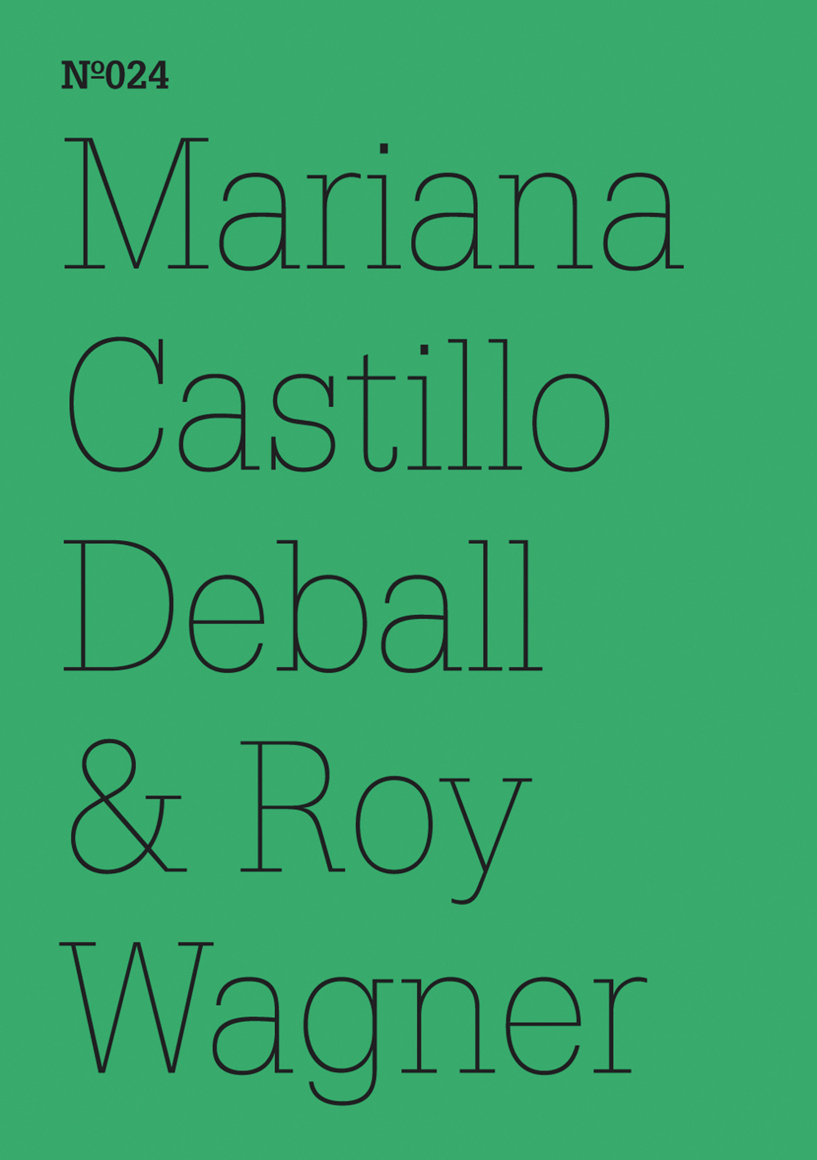 Ein grünes Cover mit dem Text Nº024, Mariana Castillo Deball & Roy Wagner, in einer dünnen schwarzen Schrift.