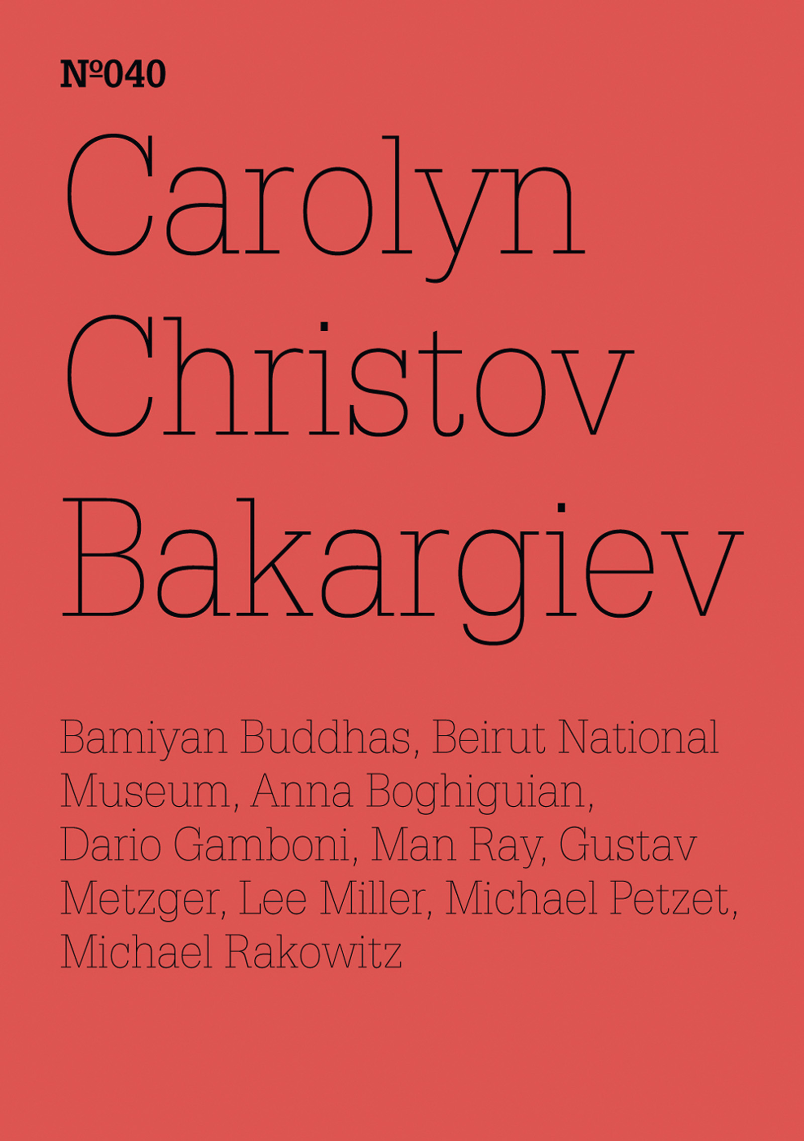 Ein rotes Cover für die Publikation Nº040 mit dem Namen Carolyn Christov Bakargiev in großer, dünner schwarzer Schrift.