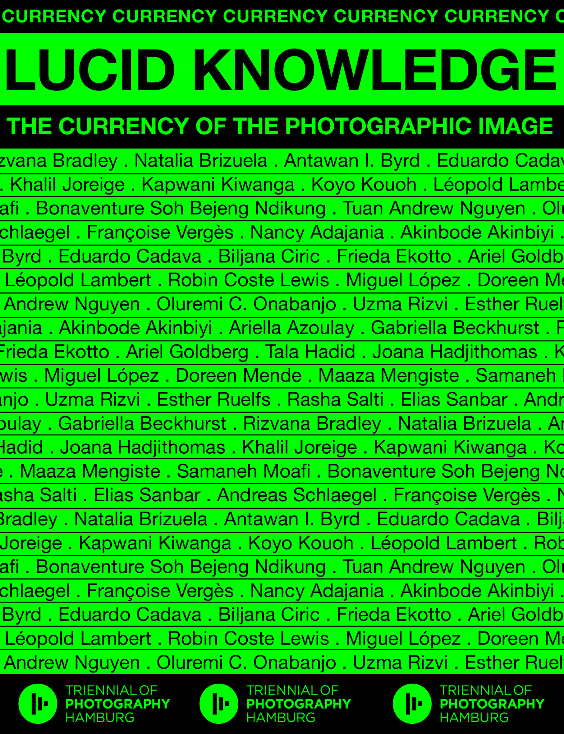 Unter dem Titel Currency untersucht die 8. Triennale der Photographie Hamburg den Wert der Fotografie im 21. Jahrhundert. Im sogenannten »retinalen Zeitalter«, in dem die Produktion, Verbreitung und der Konsum fotografischer Bilder allgegenwärtig geworden ist und wir Gegenwart und Vergangenheit fotografisch zu sehen und durch eine Linse zu ordnen gelernt haben, ist das digitale Bild als hochaktuelle Tauschwährung auf sozialen Plattformen in ständiger Zirkulation. Die Ausweitung des ökonomischen Währungsbegriffs auf Kunst und visuelle Kultur führt zu einer vielschichtigen Auseinandersetzung mit der Fotografie und ihrer Rolle für Kanonisierung, Klassifizierung, Wissensproduktion und visuelle Autonomie. In Form von Essays und Gesprächen hinterfragt der Reader zum Symposium Lucid Knowledge: The Currency of the Photographic Image kritisch, wie Fotografien Wahrnehmungen formen und Erfahrungen prägen und diskutiert, inwiefern neue Interpretationsräume und Narrative erst durch ein akribisches Hinsehen sichtbar werden.