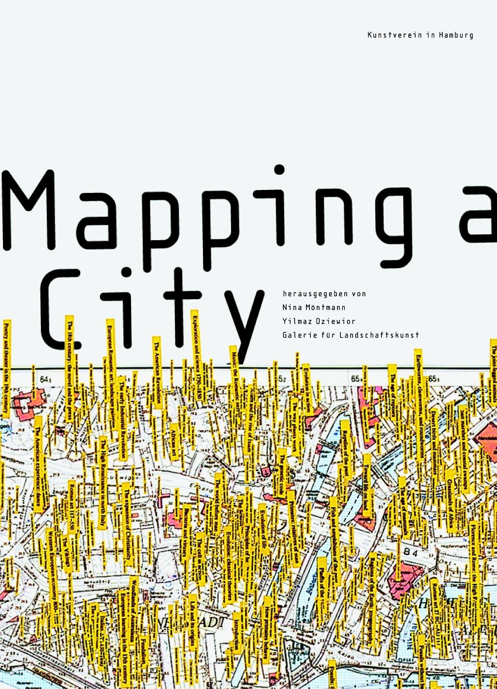 Die Stadt Hamburg diente für das umfangreiche Projekt Mapping a City als exemplarische urbane Metropole. Internationale Künstlerinnen und Künstler unternahmen in ihren Arbeiten Erkundungen des städtischen Raums und untersuchten Vorstellungen von Natur und Landschaft. Die Publikation präsentiert neben einem allgemeinen Reader zum Phänomen »Mapping« die vielgestaltigen Ergebnisse dieser künstlerischen und wissenschaftlichen Recherchen. So spürte etwa der Amerikaner Bob Braine den ehemaligen Wall- und Befestigungsanlagen um die alte Hansestadt sowie dem Auftreten und Fehlen von Vegetation im heutigen Stadtbild mittels Infrarotaufnahmen nach. Till Krause lief auf einer geraden Linie von seiner Wohnung in Altona nach Kiel und kartografierte Blickhindernisse und Handyempfang. Und der Brite Nils Norman sah die alte Hansestadt als gigantischen Abenteuerspielplatz. Die vorgestellten Künstler: Bob Braine, Stephan Dillemuth, Mark Dion, Anna Gudjónsdóttir, Anke Haarmann [AHA], Kristinn G. Hardarson, Florian Hüttner, Jussi Kivi, Till Krause, Daniel Maier-Reimer, Matt Mullican, Nils Norman, Patrick Rieve, Malte Urbschat, Mark Wehrmann, Ralf Weißleder, Malte Willms