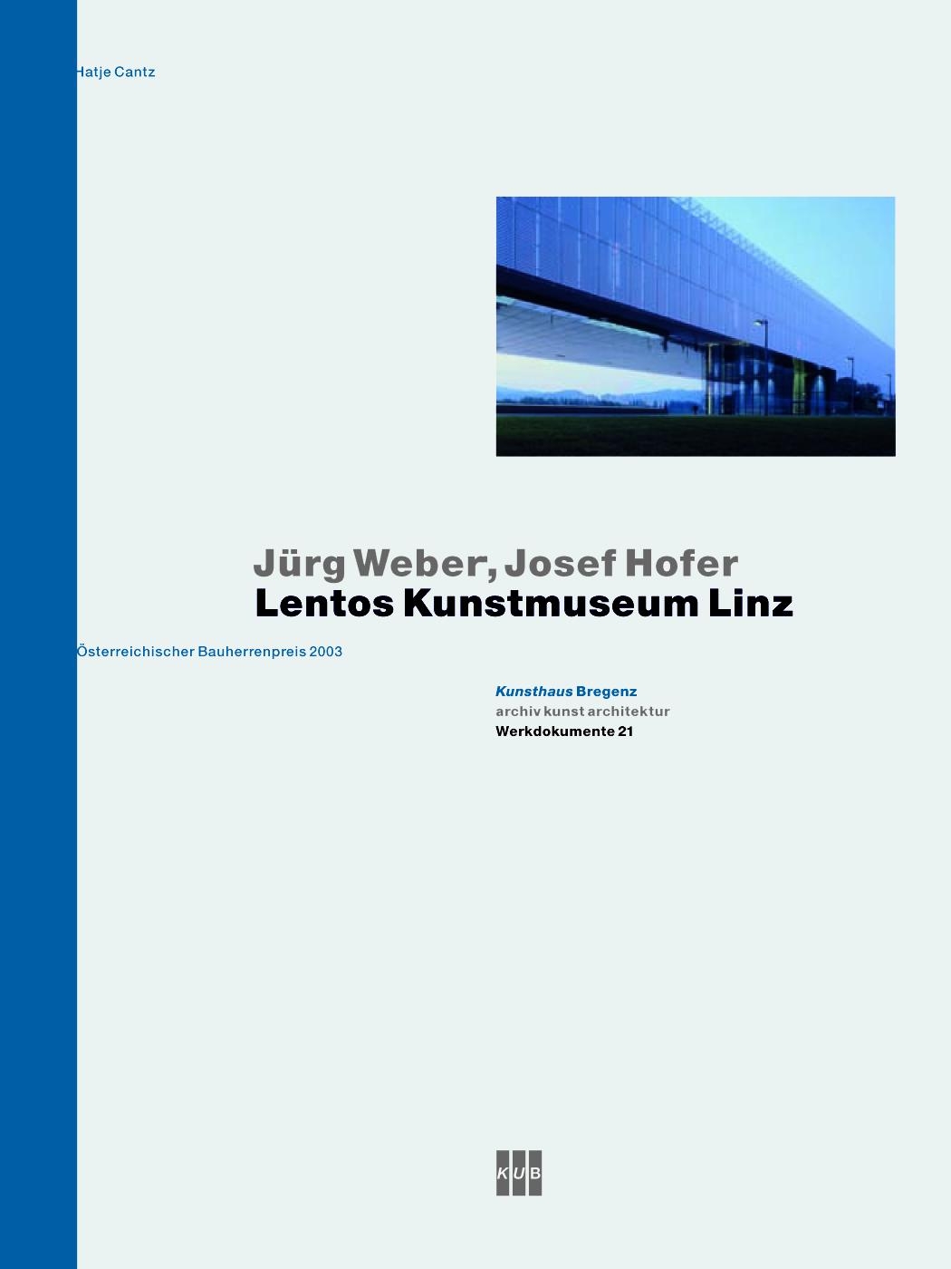 Das Linzer Kunstmuseum Lentos der Schweizer Architekten Weber + Hofer besticht durch die volumetrische Klarheit des Baukörpers und ein ideales Raumkonzept. Mit 130 Meter Länge und knapp 30 Meter Breite integriert sich der oszillierende Glaskubus auf drei Geschossen städtebaulich hervorragend in die Landschaft am Donauufer. Wie ein »gläsernes Schiff« liegt es in Linz vor Anker. 8 000 Quadratmeter bilden Raum für international renommierte Kunst von der Klassischen Moderne bis heute, eine unterirdische Bibliothek, Museumsshop, Restaurant, Café und Bar. Dem Schweizer Architekten-Duo Jürg Weber und Josef Hofer, die Preisträger verschiedener internationaler Wettbewerbe sind, gelang mit dem Kunstmuseum Lentos eine anspruchsvolle architektonische Konstruktion , die den hohen statischen Anforderungen sowohl technisch als auch ästhetisch auf höchstem Niveau gerecht wird. 2003 wurde das Lentos vom Land Oberösterreich zum »Bauwerk des Jahres« ernannt. Im gleichen Jahr erhielten das Linzer Kunstmuseum und dessen Bauherr den »Bauherrenpreis« der Zentralvereinung der Architekten Österreichs.