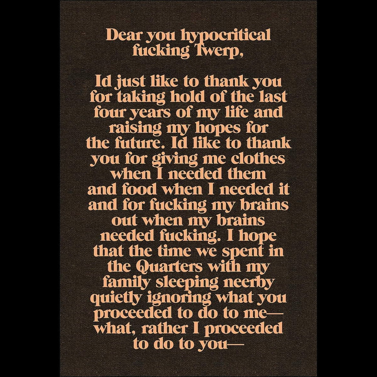 »Vorliegender Katalog präsentiert diese irritierende, provokante Kunst zusammen mit einem ›Kara Walker Lexikon‹, das Auskunft darüber gibt, worauf die ganzen Symbole in ihren Arbeiten anspielen.«