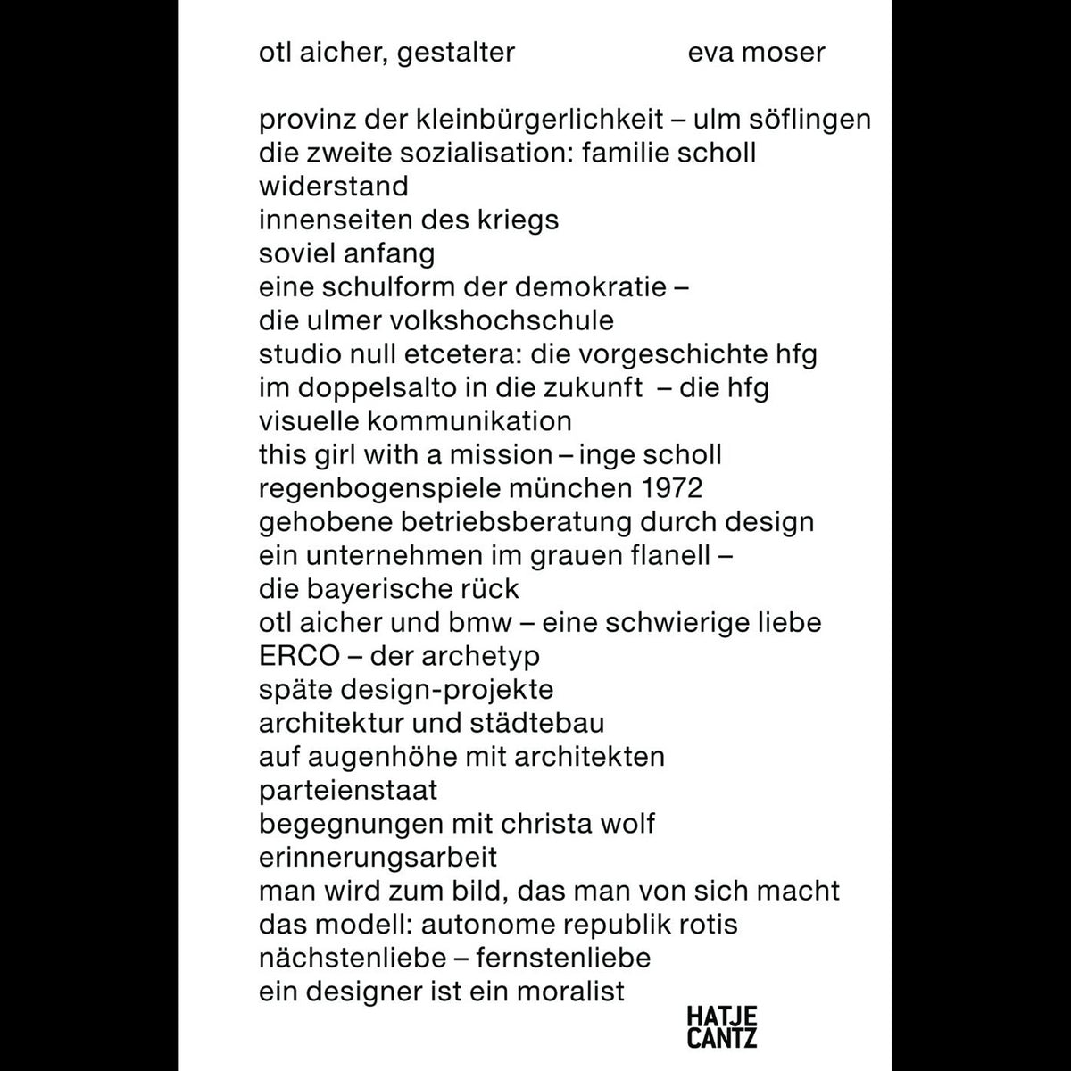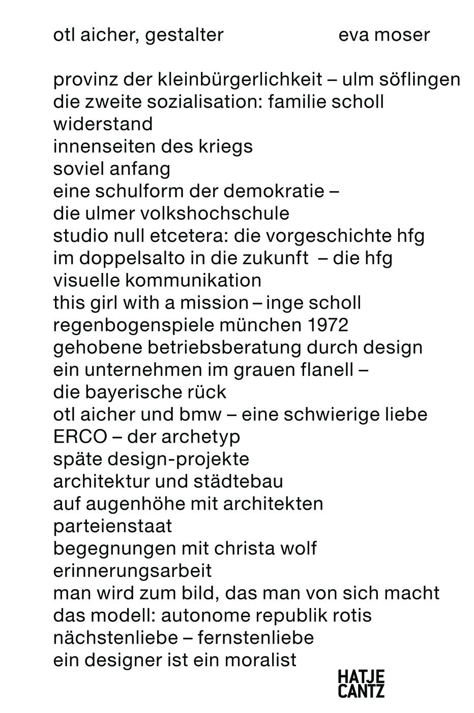 Otl Aicher, (1922 -1991) war der wohl einflussreichste Gestalter der Nachkriegszeit in Westdeutschland. Mit dem Erscheinungsbild für die Olympischen Spiele 1972 in München und seinen Sportpiktogrammen wurde er weltbekannt. Er schuf die Erscheinungsbilder wichtiger deutscher Unternehmen wie Braun, Lufthansa, ERCO und zahlreicher Banken. Als Mitbegründer und Rektor der wegweisenden Ulmer Hochschule für Gestaltung (HfG) war er Lehrer einer ganzen Generation von Grafik-Designern. Prägend für sein lebenslanges politisches Engagement war Aichers Verbindung mit dem Widerstandskreis Weiße Rose; die Schwester der hingerichteten Geschwister Scholl, Inge Aicher-Scholl, wurde seine Lebensgefährtin. Für diese erste kritische Biografie sprach Eva Moser mit Weggefährten, Familienmitgliedern, Auftraggebern, Freunden. Ihr Text wird ergänzt um Fotos aus dem familiären und beruflichen Umfeld sowie um ausgewählte Beispiele von Aichers Gestaltungsideen.