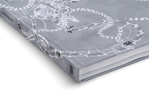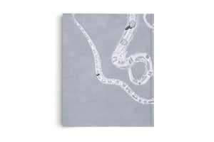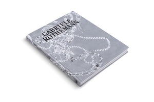Nahaufnahme der Ecke eines grauen Hardcover-Buches auf weißem Hintergrund. Der Einband ist mit einer detaillierten, monochromen Zeichnung von verschlungenen Schlangen verziert. Der Name Rothemann und der Verlag Hatje Cantz sind auf dem Buchdeckel zu sehen.